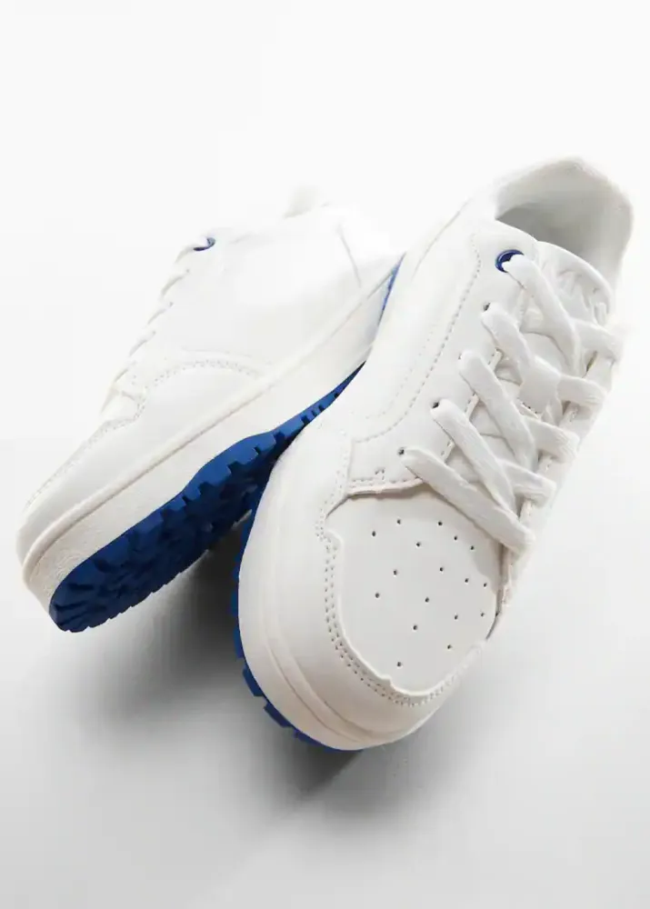 De couleur blanche avec lacets et semelle bleu